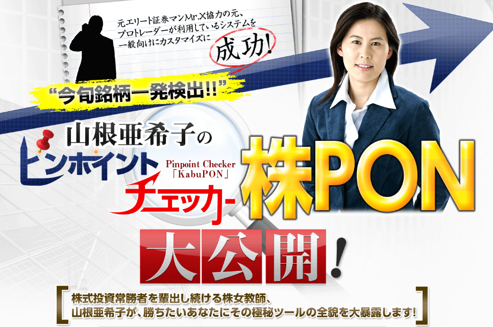 あなたはピンポイントチェッカー「株PON」がはじき出す注目銘柄を確認して売買を行っていただくだけで、負けない投資をする事ができるようになります♪