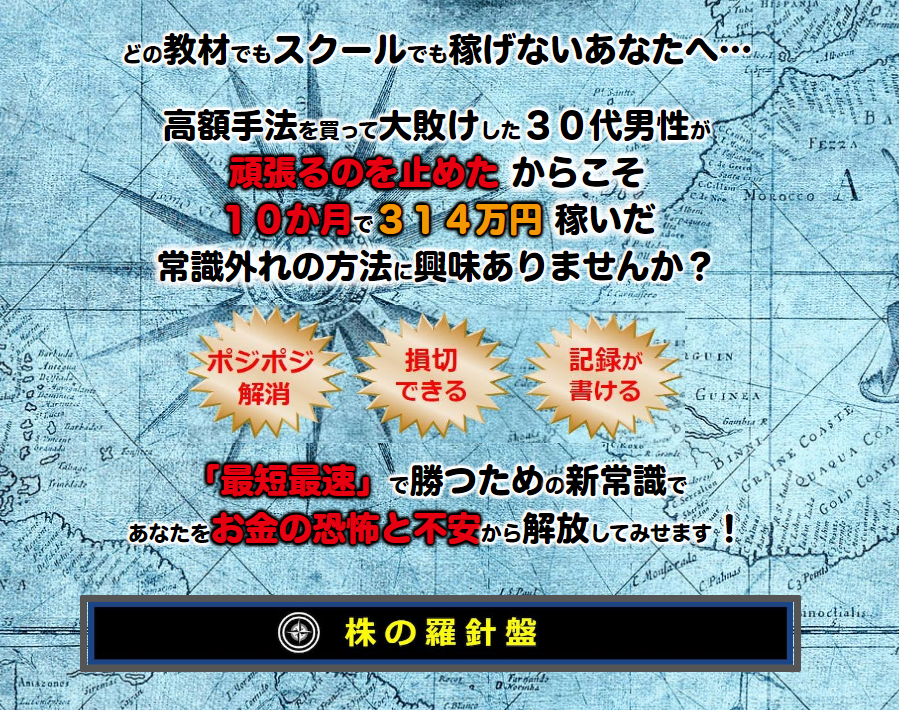 「株の羅針盤」は、株式トレードで何をやっても何年も勝てない人が、最短1週間で勝てるようになるための教材です。