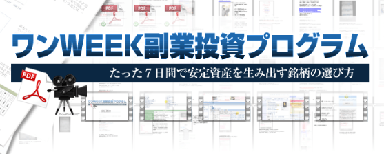 『ワンWEEK副業投資プログラム』では、あなたが正しく銘柄を選べるように、7つの動画講義と解説テキストで、徹底的に「ローリスク・ミドルリターン」の得られる銘柄選びを身に付けることができます。