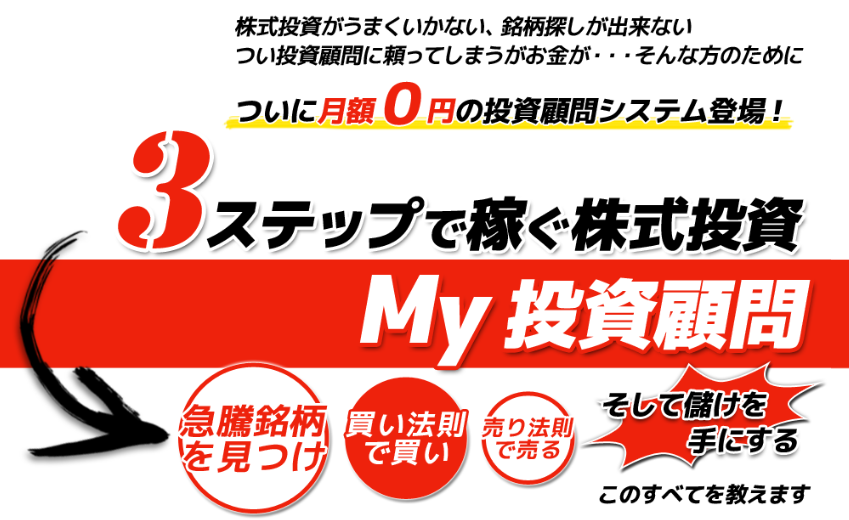 「月額0円 My投資顧問」は、3ステップで稼ぐ株式投資マニュアルです。